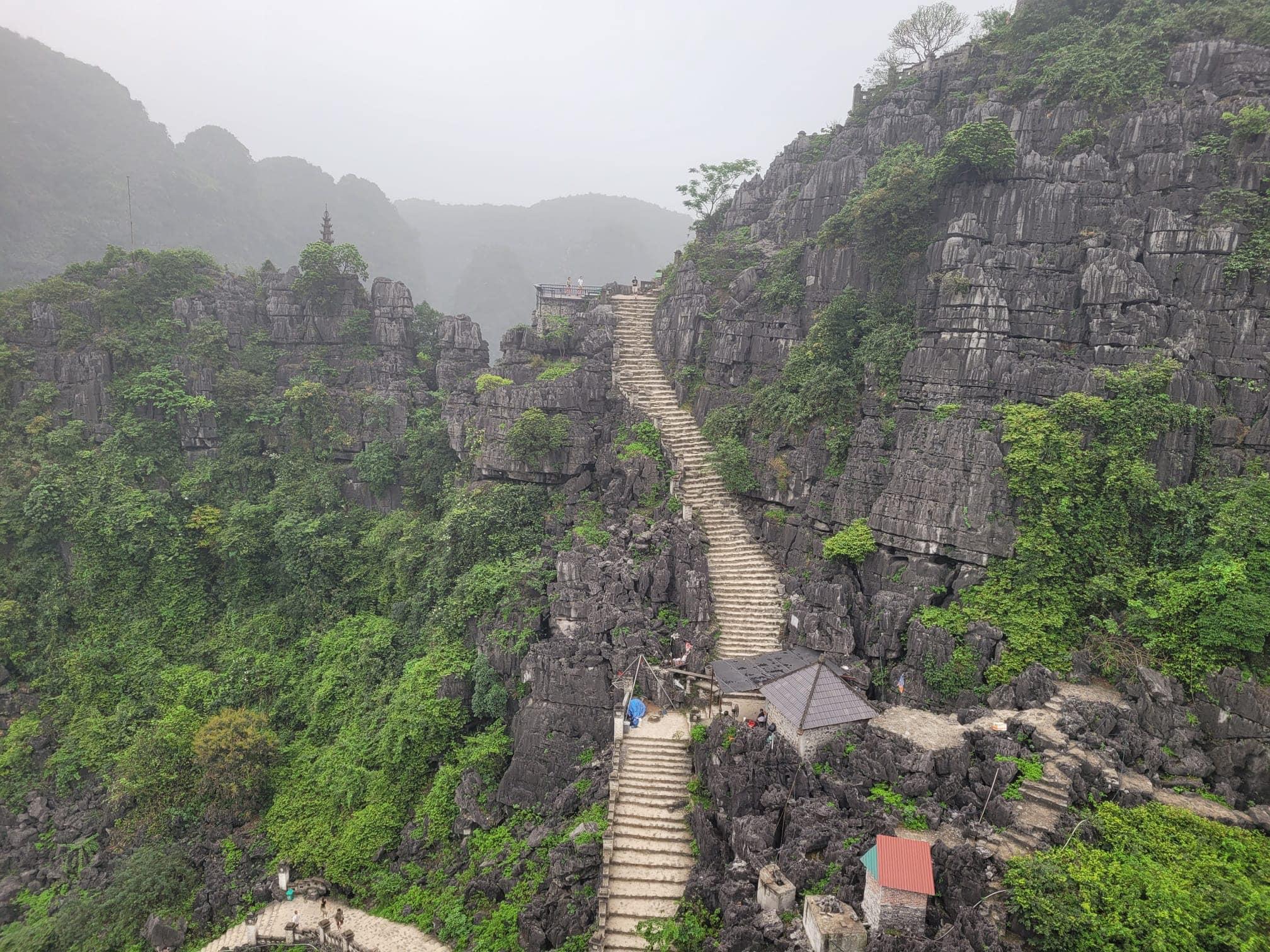 15h45: Get back to Limousine Bus then leave for Mua Cave (Dancing Cave). Walk up almost 500 steps, you can reach the top of Lying Dragon Mountain & have an amazing panoramic view of Tam Coc from here